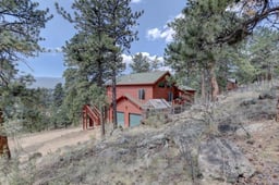 Welcome to your dream Colorado escape—where breathtaking views, refined finishes, and an unbeatable location come together. From the moment you step onto the expansive deck, the panorama of sweeping mountain peaks will steal your breath—and maybe a little bit of your heart. Inside, the great room is pure Colorado charm: vaulted ceilings, warm log accents, Brazilian cherry hardwoods, and a Vermont Castings gas stove framed by a dramatic stone surround. Sunlight streams through generous windows, illuminating a space that’s as inviting as it is impressive. The kitchen is a chef’s delight, blending style and function with whisper-close alder cabinetry, sparkling glass tile backsplash, Corian counters, a quartz sink, under-cabinet lighting, stainless steel appliances, a pantry, and a breakfast bar for casual mornings or cozy conversations. Your main-floor primary suite is a private retreat, featuring a spa-worthy 5-piece bath with tumbled travertine and granite finishes, plus a spacious walk-in closet. Downstairs, two generous bedrooms share a beautifully finished full bath and a versatile flex space—ideal for a family room, home office, or creative studio. Additional highlights include full southern exposure for natural warmth, a finished attached 2-car garage, and a prime spot right off a paved, county-maintained road. With hiking, skiing, camping, and boating just minutes away—and quick access to Highway 285—this is more than a home; it’s the Colorado lifestyle you’ve been waiting for.